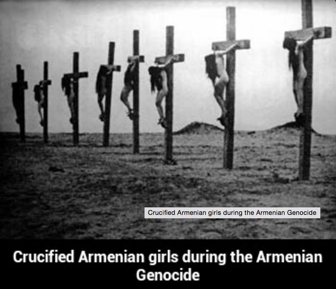 We see Armenian women being crucified by the Turks in the Ottoman Empire.